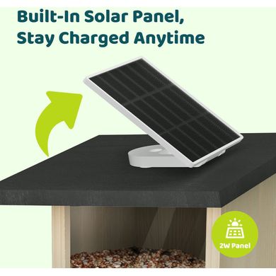 Alimentator inteligent cu cameră 1080P, recunoaștere AI a peste 6000 de specii de păsări, energie solară și aplicație mobilă. Lemn de brad ecologic, impermeabil IP66.