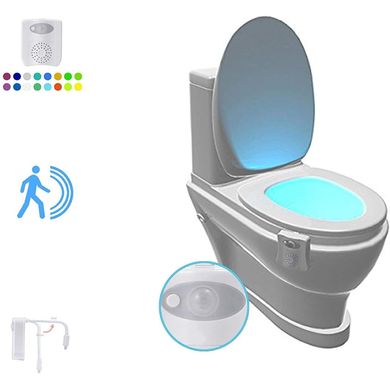 Iluminare cu LED cu senzor de mișcare pentru iluminarea nocturnă a toaletei și a vasului de toaletă, cu o gamă de 16 culori de iluminare. Servește ca lumină de noapte pentru toaletă. Cadou original.