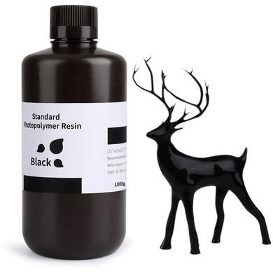 Rășina fotopolimerică neagră standard de la Elegoo este utilizată într-o gamă largă de aplicații, inclusiv la imprimantele 3D DLP/LCD. Cu toate acestea, ea obține cele mai bune rezultate în combinație cu imprimantele 3D LCD. Este un tip de polimer care își schimbă proprietățile fizice atunci când este expus la lumina UV și nu conține compuși organici volatili (COV). În cazul imprimării 3D, modelele sunt cel mai adesea realizate dintr-o rășină de plastic lichidă care se întărește atunci când este expusă la o sursă de lumină, cum ar fi un laser, o lampă, un proiector sau o diodă emițătoare de lumină (LED). Majoritatea acestor surse de lumină emit lumină ultravioletă (UV), care funcționează perfect cu rășina fotopolimerizabilă. Un alt beneficiu al acestui produs este ambalajul sigur, care constă într-o sticlă rezistentă la scurgeri, complet învelită într-o pungă cu bule de plastic și o cutie de ambalaj frumos concepută. Lungimea de undă de polimerizare este cea standard de 405 nm. Produsul este livrat într-o sticlă care conține 1 kg de rășină.
