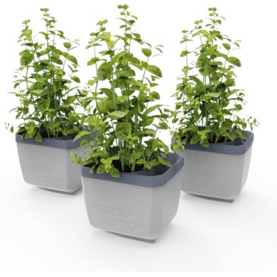 HERBS BUDDY este un ghiveci cu autoapărare, potrivit pentru cultivarea plantelor aromatice cumpărate în magazin. Designul inovator, care se înclină într-o parte atunci când este nevoie de udare, este ideal pentru grădina de ierburi din bucătărie. Pur și simplu plantați ierburile cumpărate în HERBS BUDDY și umpleți rezervorul de apă. Designul său elegant se potrivește perfect în orice bucătărie. Aveți la dispoziție mai multe culori moderne din care puteți alege. Există 3 bucăți de ghiveci în pachet.