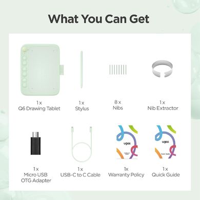 Tableta grafică Ugee Q6 este soluția finală pentru profesioniștii creativi, artiștii și entuziaștii care caută flexibilitatea de a crea în orice mediu, în orice moment. Cu o dimensiune compactă echivalentă cu hârtia A5 și un design ușor (doar 249 g), Q6 servește ca instrument portabil perfect pentru creativitate în mișcare. Această tabletă este compatibilă cu sistemele de operare utilizate pe scară largă și permite utilizatorilor să se conecteze cu smartphone-uri și laptopuri, facilitând activități precum desenarea, editarea fotografiilor sau luarea de notițe în timpul întâlnirilor virtuale. Explorați caracteristicile sale și dați frâu liber creativității. Q6 se mândrește cu un design elegant și modern, completat de un port USB-C încorporat și un cablu detașabil discret, asigurând o conectivitate perfectă la o varietate de dispozitive și permițându-vă să lucrați nestingherit în orice mediu.