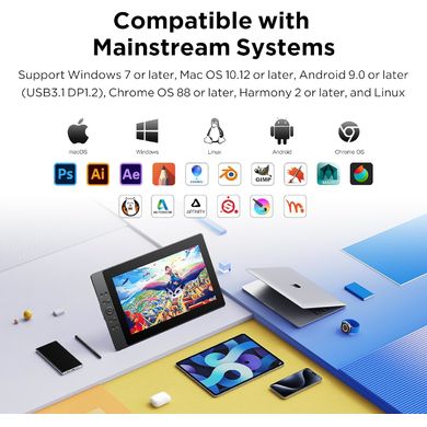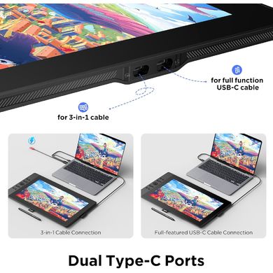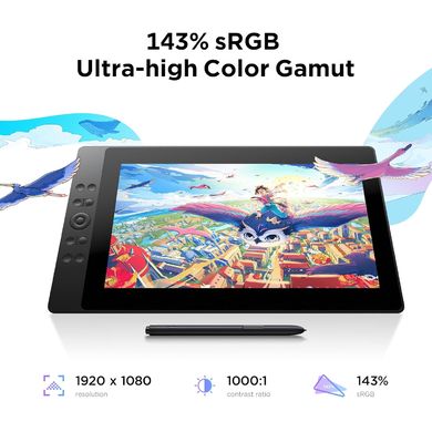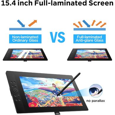 Tabletă de desen pentru calculator Ugee UE16, 143% sRGB, ecran complet laminat de 15,4", 8+1 taste rapide și stylus fără baterie, suport Windows/Mac/Android.