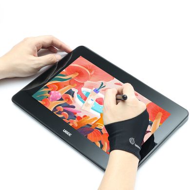 Mănușa de desen de înaltă calitate de la Ugee este concepută pentru artiști pentru aajuta la reducerea frecării mâinilor pe tabletele de desen și la eliminarea grăsimii de pe ecran. Mănușa este potrivită atât pentru utilizatorii dreptaci, cât și pentru stângaci, acoperind doar două degete de la fiecare mână (inelar și degetul mic) care nu sunt utilizate în mod normal pentru a opera tableta, dar pot intra cu ușurință în contact nedorit cu aceasta. Designul unic cu două degete permite mănușii să se întindă flexibil pentru a se potrivi palmei, ceea ce o face potrivită pentru majoritatea persoanelor și confortabil de pus și scos. Utilizarea mănușii pentru desen digital previne cu ușurință petele și petele de pe mâini și tabletă, făcând munca de desen electronic mai ușoară și mai plăcută.