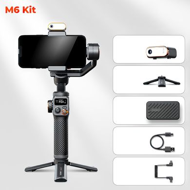 Kitul iSteady M6 dispune de patru porturi UNC 1/4"-20, oferindu-vă posibilitatea de a vă extinde creativitatea cu accesorii suplimentare. Datorită tehnologiei de încărcare inversă, vă puteți încărca în mod convenabil smartphone-ul prin portul de ieșire de pe gimbal în timp ce filmați videoclipuri, astfel încât nu trebuie să vă faceți griji că rămâneți fără baterie. Numai bateria gimbaluluidurează un număr impresionant de 18 ore de utilizare continuă. În plus, declanșatorul multifuncțional vă permite să efectuați o varietate de funcții de bază, cum ar fi activarea modului Sport sau All Lock, recentrarea gimbalului și trecerea la modul de fotografiere ultra-wide. În plus,butoanele de mișcare A-B vă permit să realizați capturi de mișcare time-lapse fără a avea nevoie de o aplicație sau de Bluetooth. Pregătiți-vă să creați cu ușurință videoclipuri motion time-lapse în cel mai scurt timp. Geanta de transport este o modalitate excelentă de a depozita și transporta gimbalul, trepiedul și lumina de umplere. De asemenea, este căptușită, astfel încât echipamentul dvs. va fi protejat de deteriorări. Rotița de control versatilăvă permite să rotiți axa de rotație, să controlați focalizarea și, de asemenea, săreglați lumina rece/caldă și lumina RGB.