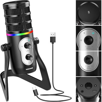 Este suficient să apăsați butonul Mic Mode pentru a comuta direcția de captare a sunetului, care este potrivită pentru diferite scenarii. Controlul ușor al volumului de ieșire al microfonului este posibil cu ajutorul butonului de creștere a sunetului. Este prevăzut cu un port USB Type-C, care este compatibil pe scară largă cu Windows, Mac, PS4, PS4 Pro și PS5 (este necesar un cablu OTG suplimentar pentru dispozitivele Android și iOS, iOS suportă doar versiunile mai mici de 9.0). Pur și simplu conectați CM27 la un cablu USB și conectați-l la dispozitivul dvs. Un buton de mute la îndemână în partea de sus, cu un indicator LED roșu, vă oferă opauză pentru a vă limpezi gâtul în timpul înregistrării sau al transmisiunii live. Microfonul este proiectat cu un efect de lumină RGB cool pentru a oferi jocurilor sau streamingului video efectul wow pe care îl doriți.