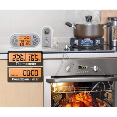 Termometru digital fără fir pentru măsurarea temperaturii cărnii sau a legumelor, două sonde de măsurare, alarmă programabilă