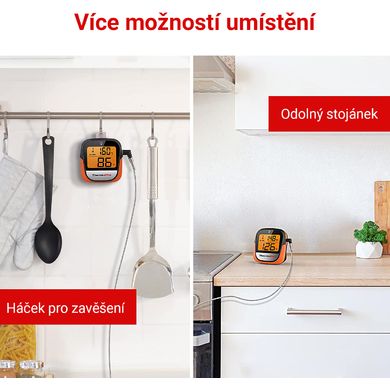 Aplicația vă permite, de asemenea, să setați o alarmă de limită pentru un interval de temperatură selectat, cu alerte de temperatură ridicată (HI) și scăzută (LOW). Datorită afișajului LCD clar și retroiluminat, puteți verifica dintr-o privire temperatura setată și cea curentă. Termometrul poate fi utilizat la prepararea unei varietăți de alimente, de exemplu pe grătar, în cuptor, în afumătoare sau la prăjit. Termometrul aretemperaturi preprogramate pentru păsări de curte, carne de vită, vițel, porc, șuncă, pește, miel și curcan de diferite grade de coacere.