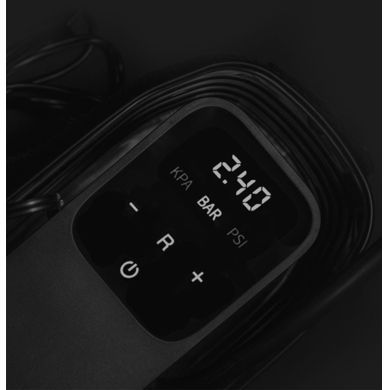 Întregul compresor este fabricat din materiale de înaltă calitate, care pot fi simțite la prima atingere. Pe partea superioară, compresorul are un afișaj și patru butoane pentru a controla compresorul. La umflare, puteți nu numai să citiți nivelul actual de presiune, ci și să setați când compresorul ar trebui să oprească umflarea. Compresorul se oprește automat atunci când atinge presiunea dorită