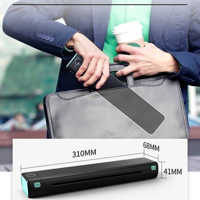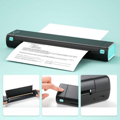 Mini-imprimantă termică cu calitate de imprimare alb-negru 203 DPI, format maxim A4, dimensiuni mici, baterie Li-ion 1200 mAh, conexiune prin cablu sau Bluetooth