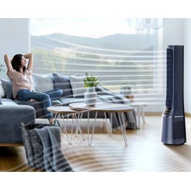 inteligente și confort maxim. Acest ventilator elegantfără palete de culoare albastră va completa