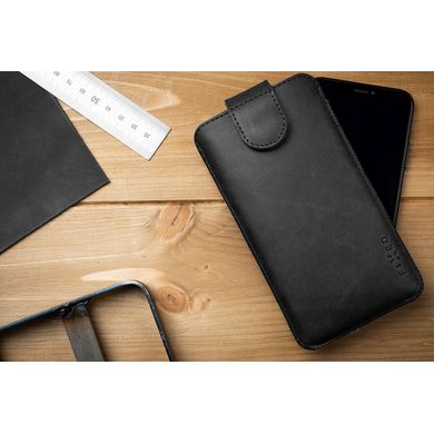 Husă din piele realizată manual în Republica Cehă, sistem de extragere cu închidere cu magnet, negru