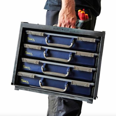 Aveți mereu nevoie să vă păstrați șuruburile, elementele de fixare sau uneltele miciperfect organizate? Cutia Raaco Assorter cu 17 inserții oferă o soluție fiabilă pentru munca de zi cu zi în atelier și pe drum. Datorită construcției sale durabile, a aranjamentului inteligent și a închiderii sigure, vă puteți baza întotdeauna pe ea.