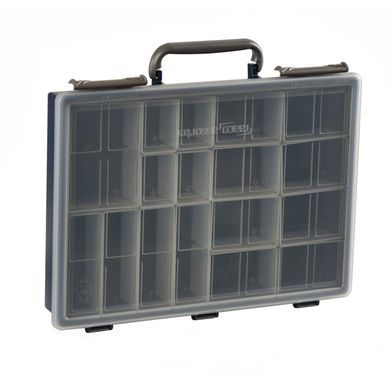 Mânerul practic face cutia ușor de transportat, făcând-o ideală nu numai pentru atelier, ci și pentru munca pe teren. Poate suporta încărcături de până la 5 kg. Această cutie este alegerea ideală pentru oricine are nevoie de un organizatorfiabil, ușor și clar pentru materiale și unelte mici.