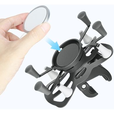 Suport universal pentru ghidon sau bară, pentru telefoane cu sau fără carcasă, lățime 43 – 100 mm, clemă cu eliberare rapidă pentru diametrul 18–35 mm, suport MagSafe