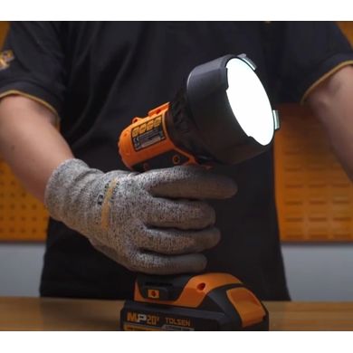 Lampa funcționează cu o baterie de program 20V PLATFORMA 20V LITHIUM-ION (TOLSEN MP20V), dar aceasta nu este inclusă, nici încărcătorul. Acest lucru oferă utilizatorului opțiunea de a utiliza propriile baterii compatibile. LED-ul puternic de 10W asigură o durată lungă de viață și un consum redus de energie.