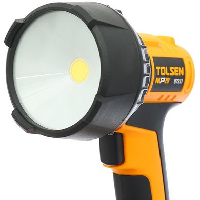 Lanternă LED portabilă Tolsen Aku, 10W, 3 moduri (1000lm, 500lm, SOS), mâner moale, clip de curea. Ideală pentru muncă, reparații și situații de urgență. Fără baterie.