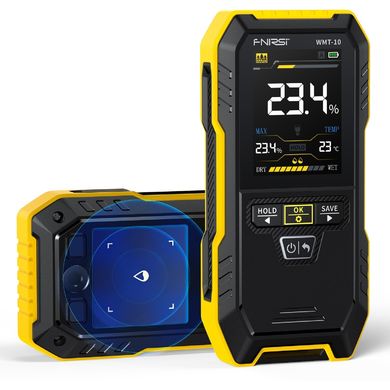 FNIRSI WMT-10: Higrometru digital cu afișaj LCD, măsurare fără contact a umidității (0–75%), precizie de 0,1%, alarme, lanternă și stocare de până la 30 de seturi de date.