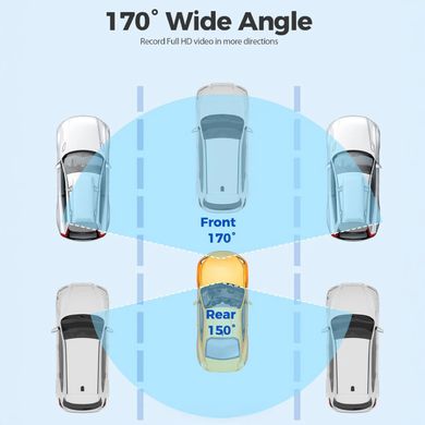 Set cameră auto față și spate cu rezoluție 3840 × 2160, **senzor G încorporat, aplicație pentru smartphone-uri, vedere nocturnă, modul GPS, înregistrare în buclă