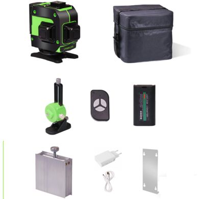 Nivel cu laser, laser verde luminos 3×360°, raza de acțiune a fasciculului de până la 30 de metri, 5 niveluri de luminozitate, baterie reîncărcabilă, poate fi montat pe un trepied sau pe perete