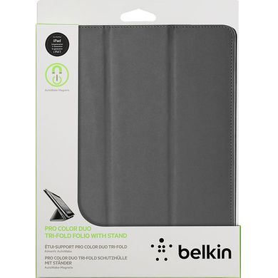 Belkin iPad 3 husă Duo Trifold Folio, piele de căprioară PU, gri (F8N784cwC01)